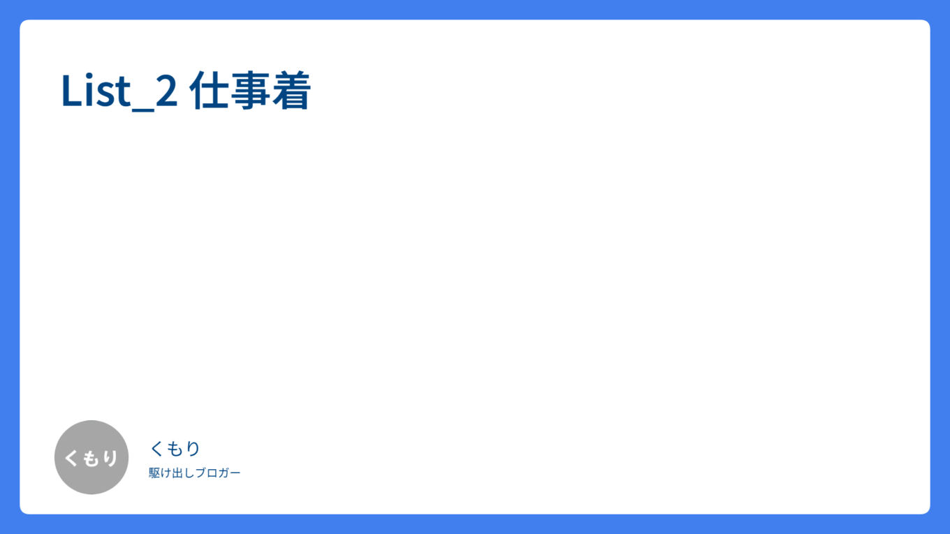 新着記事News ◇やりたいこと 2025.10.13 やりたいこと Topic_1 服のリフォーム|マジックミシン 2025.08.24 服 List_3 その他小物 2024.07.05 服 やりたいこと 服 人気記事Popular Post ◇やりたいこと 2025.10.13 やりたいこと List_3 その他小物 28 views List_1 普段着 22 views Topic_1 服のリフォーム|マジックミシン 8 views List_2 仕事着 8 views ◇やりたいこと 1 views くもり駆け出しブロガーProfile転勤や株の失敗をきっかけに、生活の見直しを始めた一般サラリーマン。 最適化をコンセプトに、ルールブックとしてこのブログを開設。プロフィールを読む